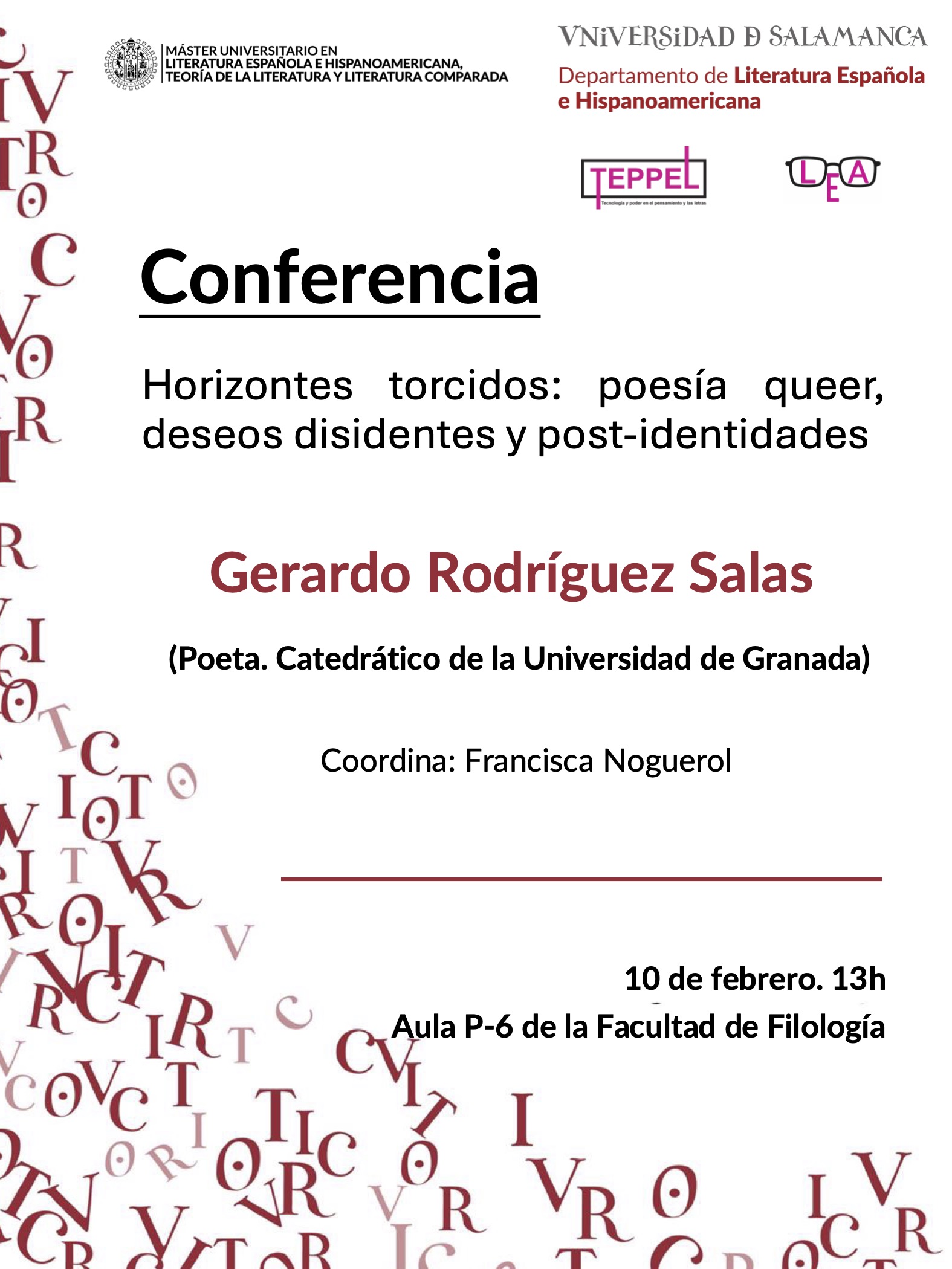 10 de febrero: Conferencia «Horizontes torcidos: poesía queer, deseos disidentes y post-identidades», de Gerardo Rodríguez Salas