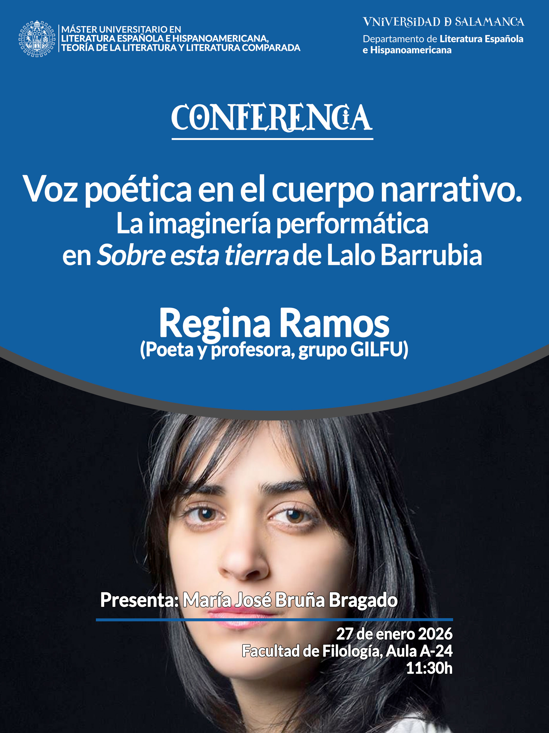 27 de enero: Conferencia «Voz poética en el cuerpo narrativo. La imaginería performática en Sobre esta tierra de Lalo Barrubia» de Regina Ramos