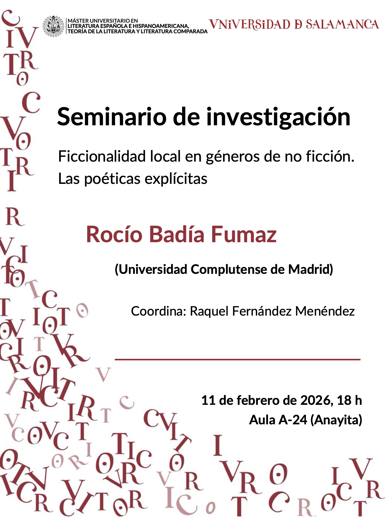 11 de febrero: Seminario «Ficcionalidad local en géneros de no ficción. Las poéticas explícitas», de Rocío Badía Fumaz