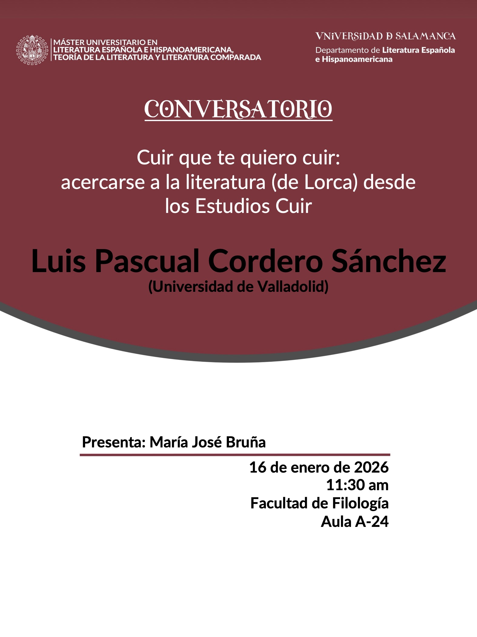 16 de enero: Conferencia «Cuir que te quiero cuir: acercarse a la literatura (de Lorca) desde los Estudios Cuir» de Luis Pascual Cordero